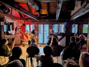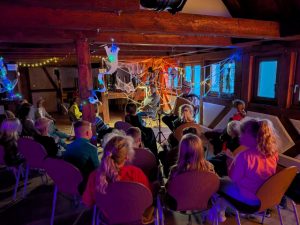 Um die Anspannung der unheimlichen Gestalten etwas zu lockern, sorgte Wolfgang Müller mit Musikstücken dafür, dass die Kinder mitmachen konnten. Anschließend gab es eine kleine Stärkung.